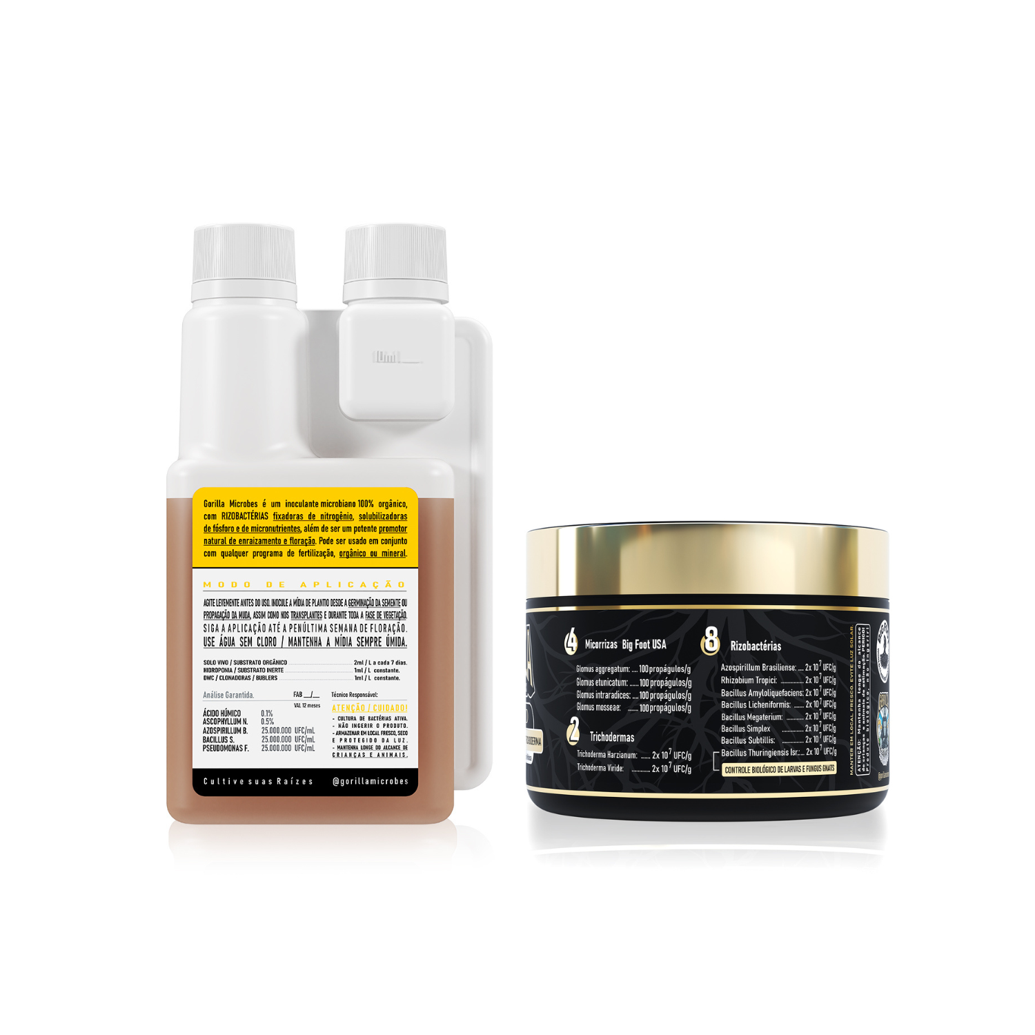 Especificações Técnicas do Fertilizante de Rizobactérias Gorilla Microbes 250ml: